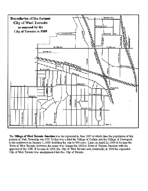 The village of West Toronto Junction becomes the town of West Toronto Junction. For many years West Toronto was essentially a Canadian Pacific Railway company town.